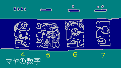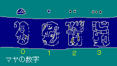 マヤの数表記は神様の横顔絵文字で表現され、20進法が基本となっている。ただし暦を数える場合、3桁目は360とする。